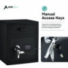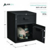 A rugged and highly secure unit great for keeping cash, jewelry, important documents and other valuables for any situation. It has a bin door that serves as a drop slot for depositing without opening the compartment. This safe features a digital lock with a keypad and programmable access codes which can be changed at will. A backup key is also included to provide emergency access to the safe via a concealed keyhole. Another added feature is that when wrong codes are entered 3 times, the safe will go into lock-out mode preventing further incorrect attempt and provide additional security. Ideal for hotels, gas stations, motels, restaurants, or any retail businesses, this AdirOffice digital safe's main door is shut by two deadbolt door locks for added security. It is also designed to be moun