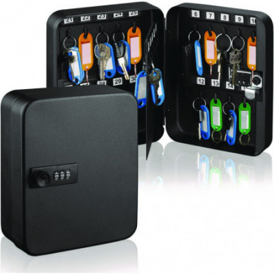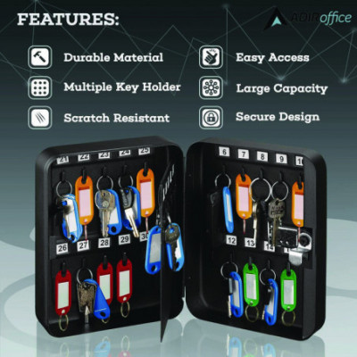 Stronger than any key cabinet in its class, this wall-mounted, AdirOffice Secure Key Cabinet is expertly constructed using 16-gauge, heavy duty steel with a scratch-resistant finish to provide long-term durability and extra protection for your keys. It also features a continuous piano hinge to keep the door in line with the cabinet, offering optimal security and durability to supply years of reliable use. Comes complete with key tags to make organization quick and efficient. In addition, it features a depth that accommodates larger key rings so you no longer have to remove keys from their rings in order for them to fit inside. Keys can be hung separately on hooks or with multiple keys on supplied key tags for safe storage and easy access. The combination lock provides an entry code that can be changed as often as you like. With over 1,000 possible combinations available, users will never have to worry about theft. For added convenience, screws and wall anchors are included for easy mounting and setup. This four-point mounting hardware, along with pre-drilled holes on the the back of the unit ensure easy, stable installation on any wall. If you are one of those people who happen to have a lot of keys on hand, this cabinet is ideal for keeping your keys secure and organized. It's also a great solution for businesses that need to store multiple keys on a regular basis, including property managers, car dealerships and auto repair shops, as well as establishments that offer valet parking services, such as hotels, restaurants and banquet halls.
