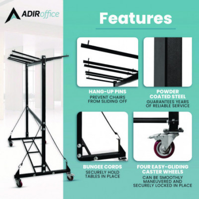 Do you organize banquets as a professional? Does your entire family love Sunday gatherings at your place? Or maybe you just need to conveniently move dozens of foldable chairs and tables to a different floor or building. Whatever the case may be, this wheeled steel cart is exactly what you need! Durable steel construction for up to 42 folding chairs and 12 tables. Save time with easy and convenient chair and table transportation, guaranteed by the four thermo-plastic rubber swivel caster wheels whether the caddy is moving fully loaded or unloaded. With this portable and durable rack, you will be able to set up the necessary seats and tables with no fuss, no delay and most importantly, no sweat.