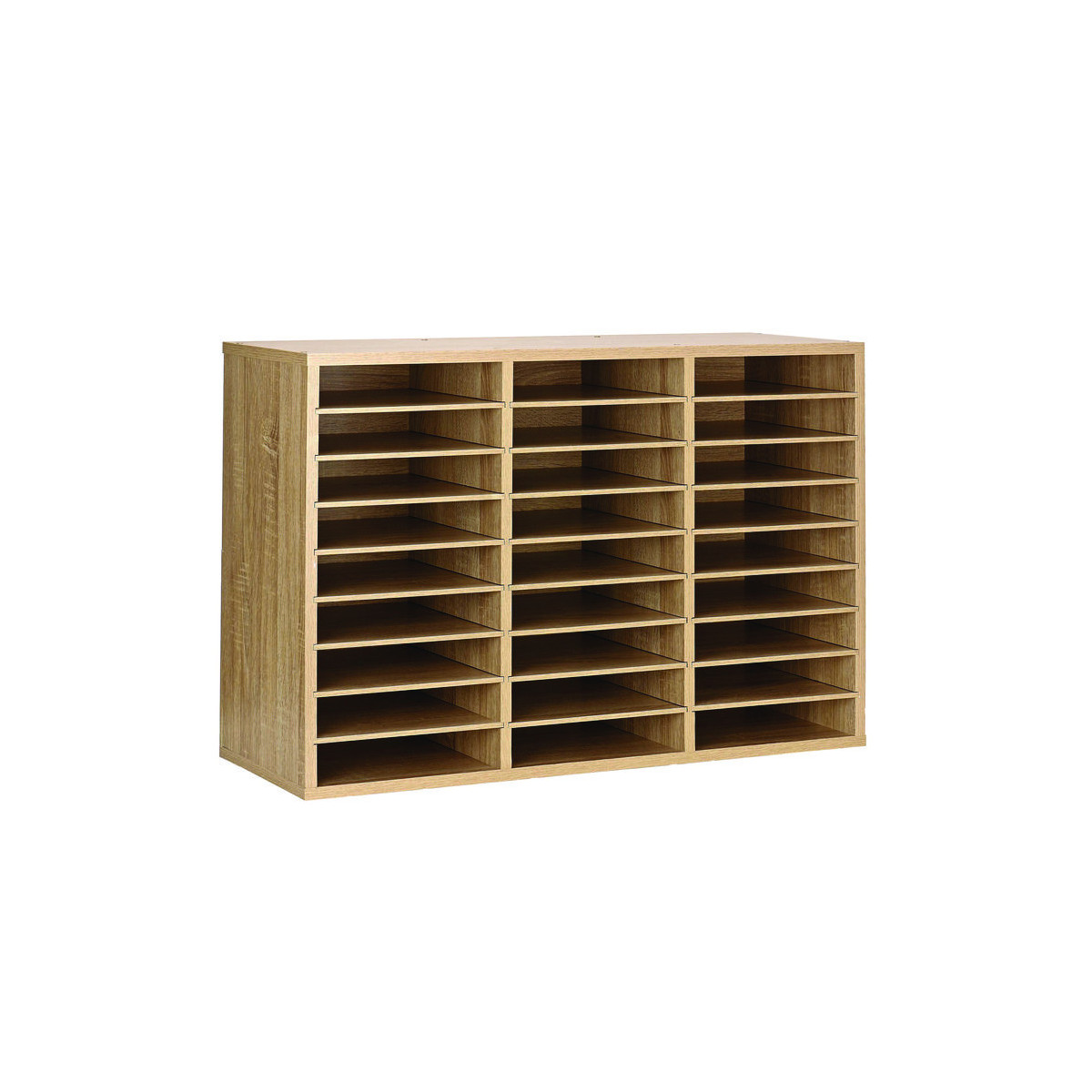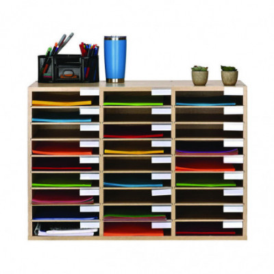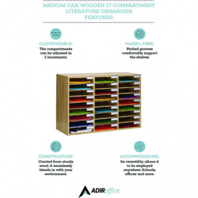 Wooden 27 Compartment Literature Organizer, 27 Sections, Letter Size, 31.49 x 11.81 x 21.65, Medium Oak