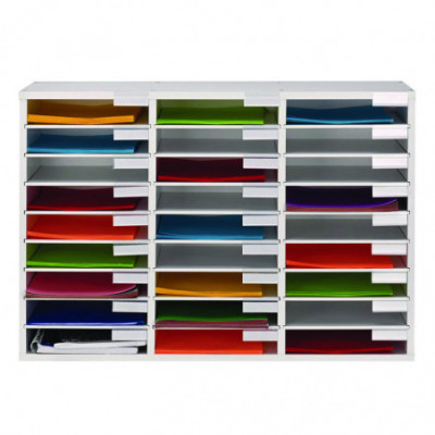 Life is crazy and messy, but you can help yourself, staff, and students stay as organized as possible with this wooden 27 compartment literature organizer. Its versatility allows it to be employed anywhere, such as at school, offices or daycares. Created from sturdy finished wood material, the contemporary literature organizer will seamlessly blend into your room and outlast cheap cardboard alternatives.