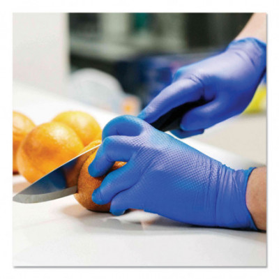 These heavy-duty nitrile gloves feature an aggressive raised diamond texture for a grip that won't slip, wet or dry. Thickness provides strong barrier protection. Resistant to rips, punctures, and abrasions. Latex-free.