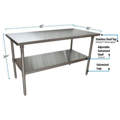 Stainless Steel Flat Top Work Tables, 60w x 30d x 36h, Silver, 2/Pallet
