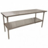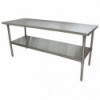 This work table features an 18-gauge T-304 stainless steel top, complete with turndown edges on all sides for added durability. Reinforced with channels, the table ensures stability and strength. It comes with an adjustable galvanized undershelf for convenient storage. The table is supported by four 1.63" diameter galvanized legs, each equipped with adjustable high-impact corrosion-resistant feet, providing a sturdy and reliable work surface.