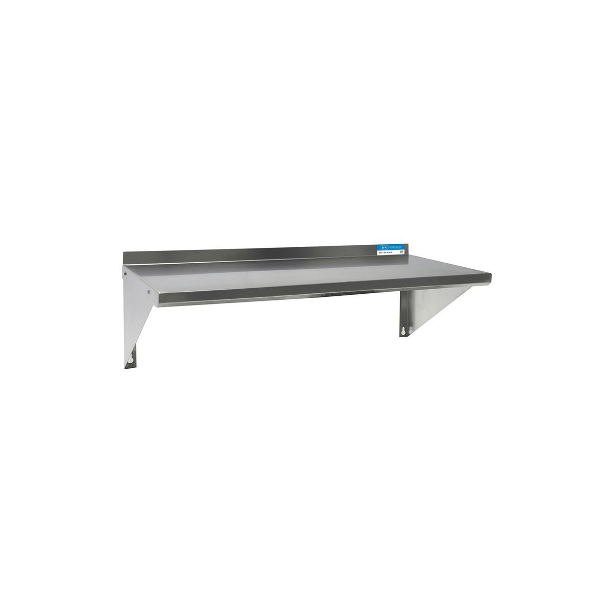 This wall-mounted shelving solution is constructed from durable 18-gauge T-430 stainless steel. It features a 1.5" rear turn-up for added stability and is supported by two 8" angle supports, providing a robust and space-efficient storage option.