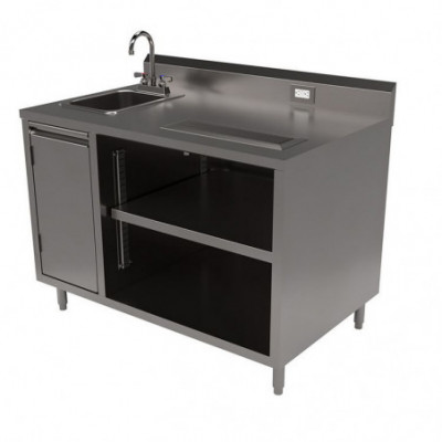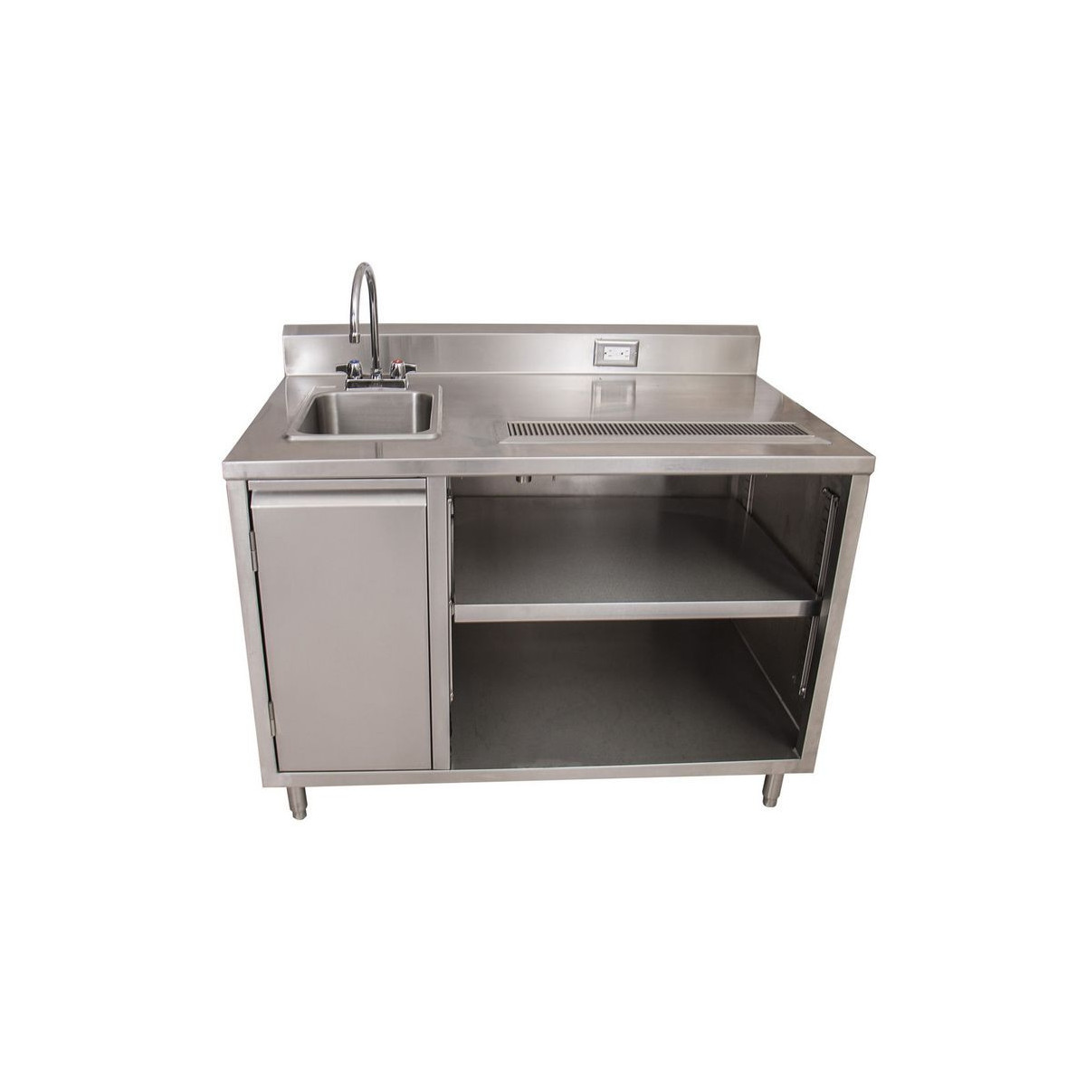 Stainless Steel Beverage Table with Left Sink, Rectangular, 30" x 48" x 41.5", Silver Top, Silver Base/Legs