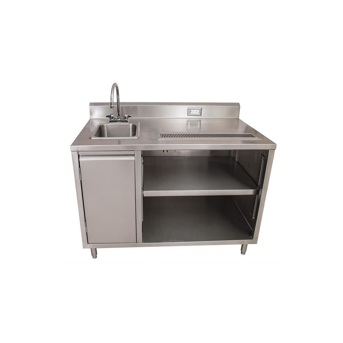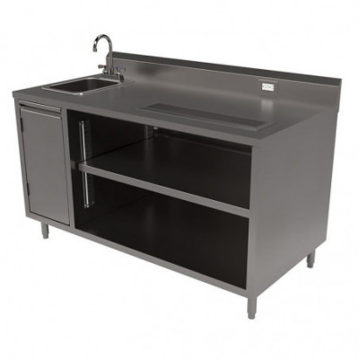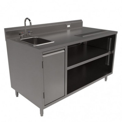 Stainless Steel Beverage Table with Left Sink, Rectangular, 30" x 60" x 41.5", Silver Top, Silver Base/Legs