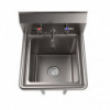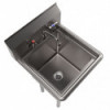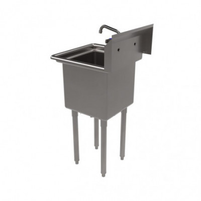 This one-compartment sink is constructed with durable 18-gauge T-304 stainless steel and comes equipped with a 9" high backsplash, 8" on-center splash mount faucet holes, and 1.5" rolled edges on the front and sides. Additionally, it includes a drain basket for added convenience. The galvanized steel legs come with adjustable plastic bullet feet for stability. The package also includes the WorkForce 8" on-center faucet with an 8" swing spout.
