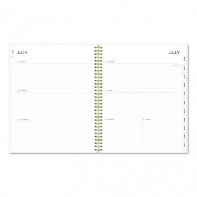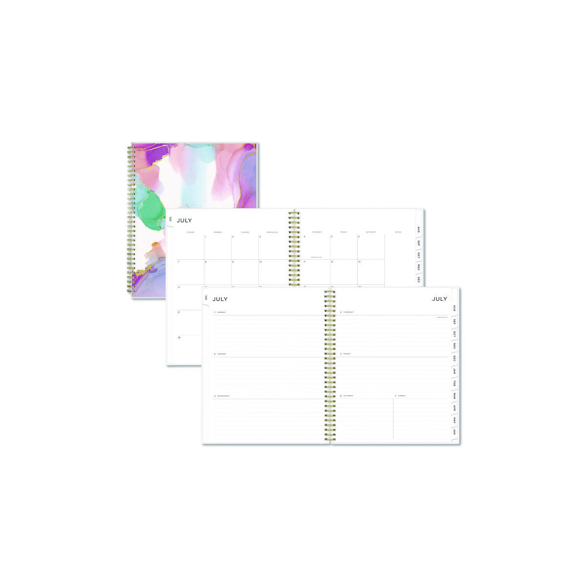 Enjoy stand-out style with this planner's pink, blue and green Multicolor Smoke cover design and gold twin-wire binding. Inside, a motivational title page gets you started with a customizable list for your school year goals; and beyond the first page, use the planner's open-format weekly spreads to stay on top of your day to day. Coordinate your weekly scheduling tasks with the tabbed monthly spreads to keep yourself poised for what's to come; and throughout the year, stay organized with dedicated pages for your yearly goals, contacts, important dates and more. Thick, premium quality paper stock minimizes the potential for ink bleed through.