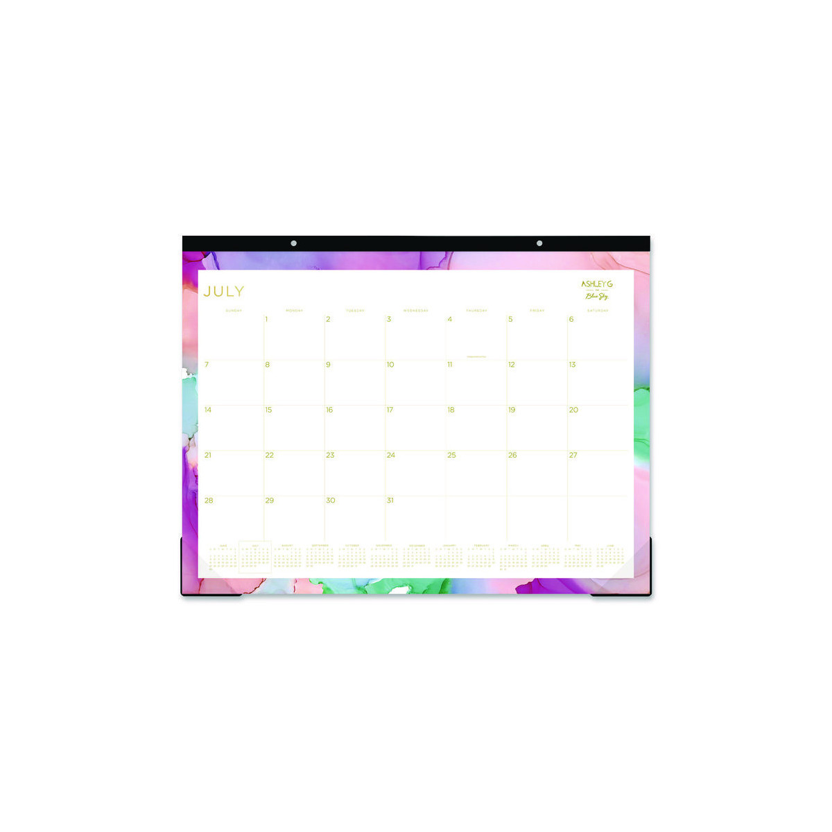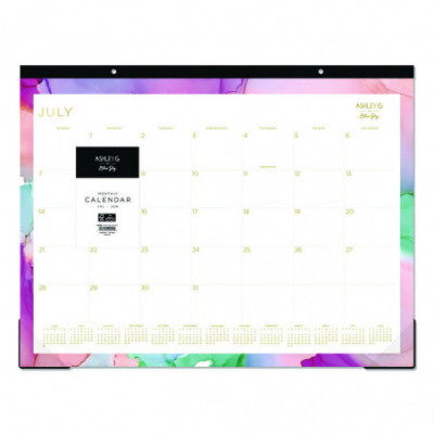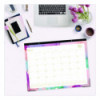 You'll stay organized and stylish with this functional deskpad calendar. There's plenty of room to record your appointments, deadlines, and personal obligations. The soft color palette will keep you refreshed and inspired. Easily reference the upcoming months with the 13-month calendar reference blocks along the bottom of each page. Major holidays are noted, and thick, premium quality pages reduce ink bleed-through. Easy-to-tear perforated pages make it simple to move on to the next month to stay on top of your busy schedule. The calendar is top-bound with cardboard backing and protective corner covers.