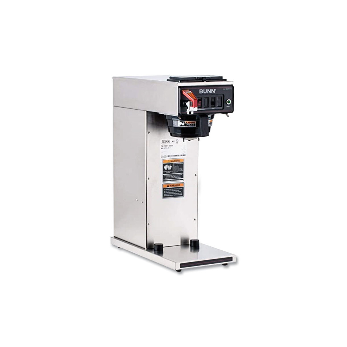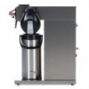 Plumbed simple switch control brewing system brews directly into portable insulated servers that keep coffee at optimal temperature. Hot water faucet (requires active plumbing connection). SplashGard® funnel deflects hot liquids away from the hand. Pourover feature included as a backup alternative. Models are space saving 9 wide. Brews between 3.8 and 7.5 gallons per hour. Stainless steel construction. Brews directly into Airpots. Accomodates Airpots from 1.9 L to 3 L size. Airpots sold separately.