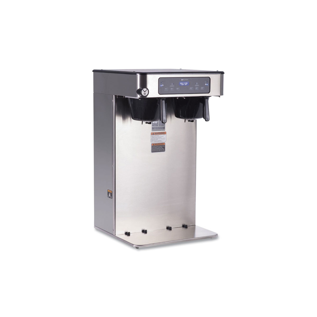 The ICB Twin Tall Infusion Series coffee brewer delivers twice the brew capacity, from a single platform. With over 23 inches of clearance under the brew funnel, the brewer is designed to easily brew into 1.5 gallon TF servers. The Peak Extraction spray head provides improved uniformity of extraction for a perfectly balanced cup of coffee, and also offers greater resistance to limescale buildup.