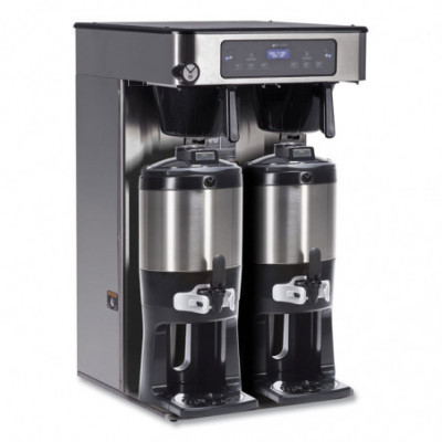 Delivers twice the brew capacity, from a single platform. With over 23 inches of clearance under the brew funnel, the brewer is designed to easily brew into 1.5 gallon TF servers. The Peak Extraction spray-head provides improved uniformity of extraction for a perfectly balanced cup of coffee, and also offers greater resistance to limescale buildup.