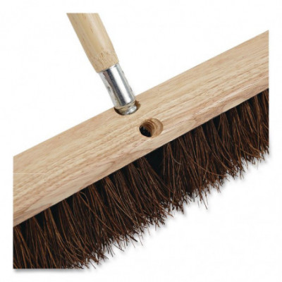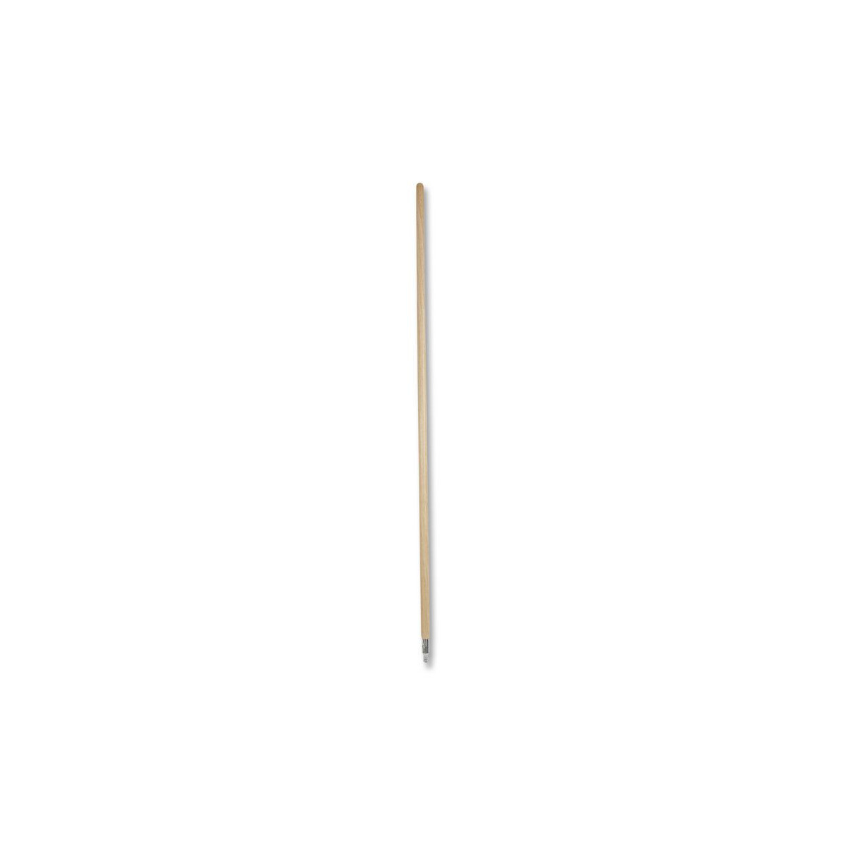 Long-lasting, die-cast aluminum threaded tip is secured to a natural lacquered hardwood broom handle. Composed of a durable handle and metal thread, this handle is strong and reliable. The handle's smooth grip is ideal for regular use with or without gloves in any environment. The clear-coated finish is easily wiped clean and repels dust. The metal threaded tip is compatible with brooms using the same threading and assembles without tools.