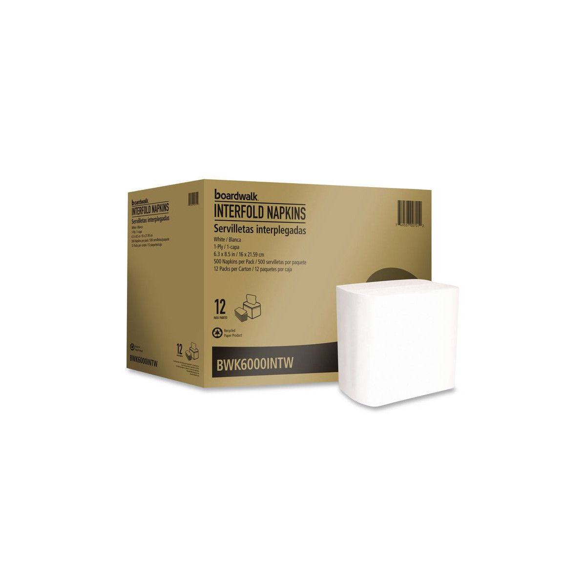 Interfold Napkins, 1-Ply, 8.8 x 6.3, White, 500/Pack, 12 Packs/Carton