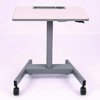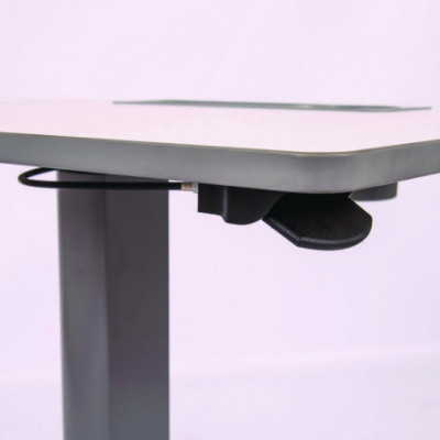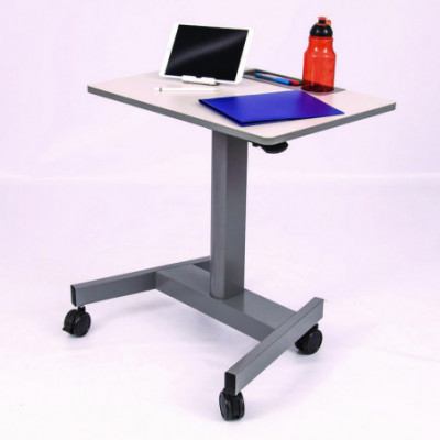 This adjustable-height student desk uses a pneumatic air cylinder to easily alter between sitting and standing for a personalized classroom environment.