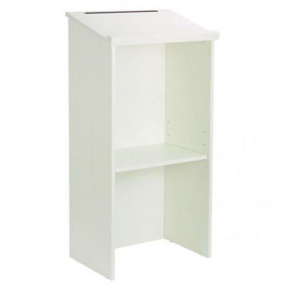 The versatile #22 Tabletop lectern functions great on its own or in conjunction with the #112 floor lectern base (sold separately). Its 0.75" thick structure is comprised of stain and scratch-resistant thermofused melamine laminate secured to a particleboard core. The #22 also features a convenient paper/book stop below its ample reading surface.
