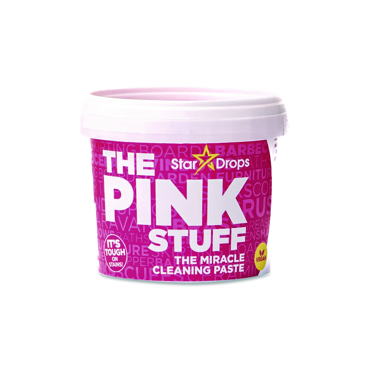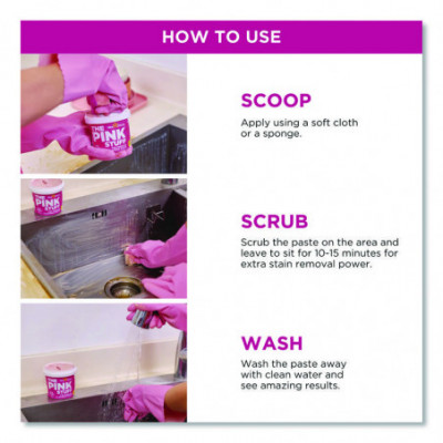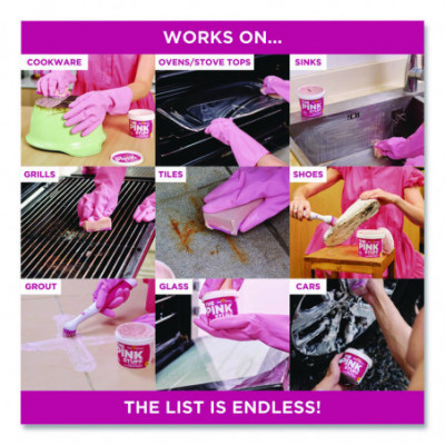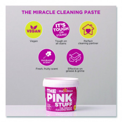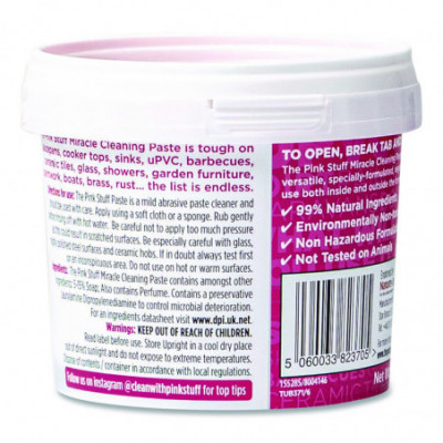 The Pink Stuff Miracle cleaning paste is perfect for cleaning dirt, grime, and stains on saucepans, cooker tops, sinks, uPVC, barbecues, ceramic tiles, glass, showers, garden furniture, paintwork, boats, and brass. The list is endless. A natural formulation has been developed to provide high performance without the need for harsh chemicals.
