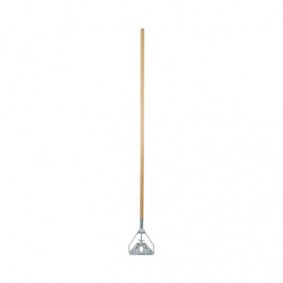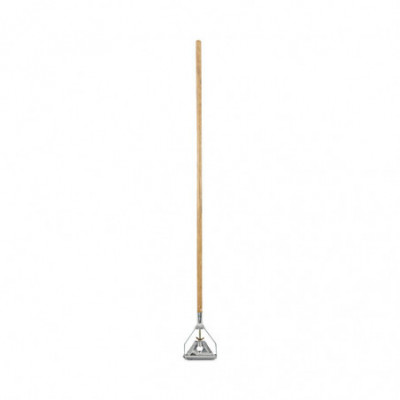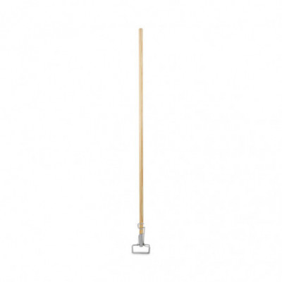 Lightweight, non-magnetic aluminum construction. One-step connecting mechanism speeds mop assembly and changeover. User-friendly bend and grip make handle more comfortable to use.