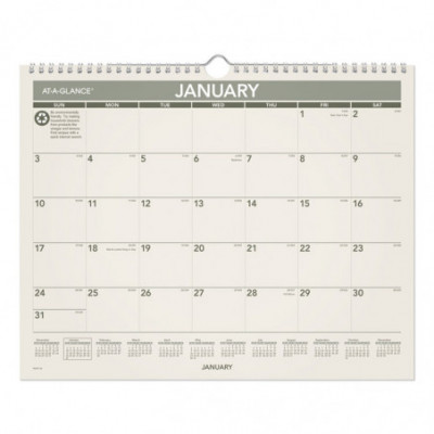 Professional desk pad calendar with bold, easy-to-read dates. One month per page, one block per day. Reinforced chipboard back and vinyl corners. Tear-off sheets, bound at top. Features a generous notes area and a yearly reference calendar at the bottom of each sheet.