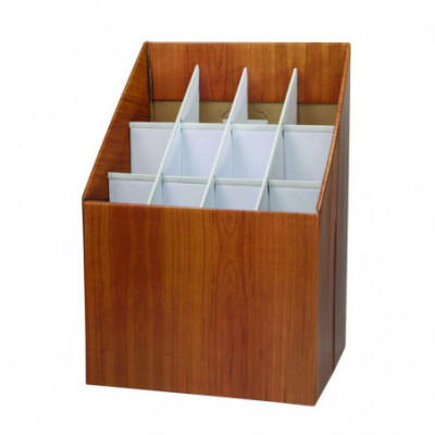 The Upright Roll File is the perfect organizational solution for any workspace, combining style and functionality. Made from durable corrugated fiberboard with a sophisticated walnut woodgrain finish, this file organizer features square tube openings, ideal for storing large file documents, reports, and folders. Each compartment is reinforced with sturdy plastic molding, ensuring long-lasting durability and strength. The upright design saves valuable desk space while keeping your documents neat, accessible, and easy to find. Whether you're managing important files in an office or at home, this sleek, modern roll file helps you stay organized and productive. Upgrade your workspace with the Upright Roll File and enjoy a clutter-free, efficient environment.