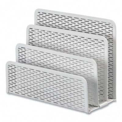 Attractive, sturdy mesh organizer is a multi-functional desktop accessory. Five 1" wide vertical sections hold file folders, slim binders, books or magazines. Three 1" horizontal sections accommodate any letter-size document and supplies. Steel mesh construction with powder coat finish for durability.