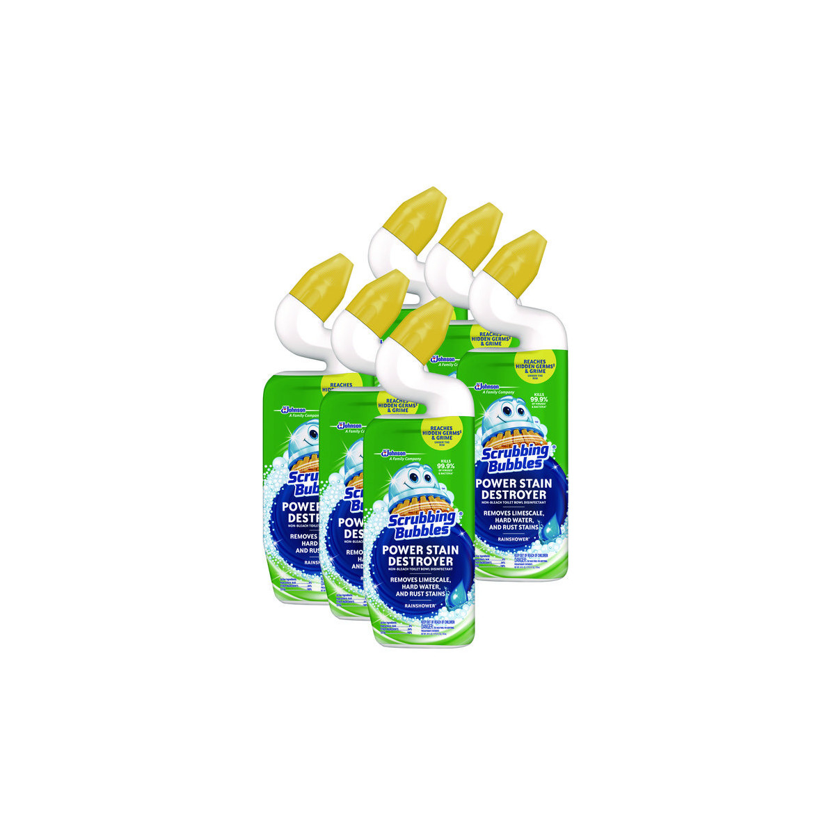 Remove rust and destroy 100% of limescale with our most powerful stain-fighting formula ever. Scrubbing Bubbles Power Stain Destroyer Toilet Bowl Disinfectant changes from green to blue as it powers through stains. Apply under the toilet rim and, after 15 minutes, just scrub the bowl, then flush to rinse. Kills 99.9% of viruses and bacteria on hard, non-porous surfaces. Reaches hidden germs and grime under the rim.