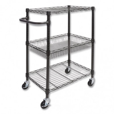 The three-shelf utility cart by Suncast Commercial® is perfect for schools, hotels and many other businesses. With polypropylene shelves and aluminum supports, this sturdy service cart was manufactured to hold up to a total of 300 lbs. The four non-marring casters provide a smooth ride when transporting from room to room.