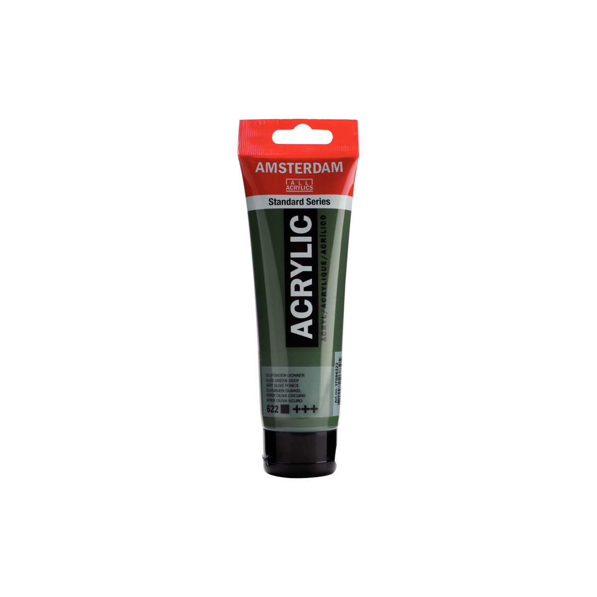 Amsterdam Standard Series acrylic paint in Olive Green Deep (622) is an opaque color with an excellent lightfastness. Our Standard Series offers you the broadest range of remarkably vibrant acrylic colors. This versatile paint is easy to work with and offers a smooth application. Use the paint straight from the tube or thinned with a little bit of water or one of our acrylic mediums. Medium viscosity paint for visible brush strokes, texture and smooth coverage with a satin finish. Made with high-quality, lightfast pigments. Formulated with 100% acrylic resin binder, resulting in an exceptionally durable and flexible paint film with a uniform degree of gloss. Odorless, water-based formula that becomes waterproof and permanent when dry.