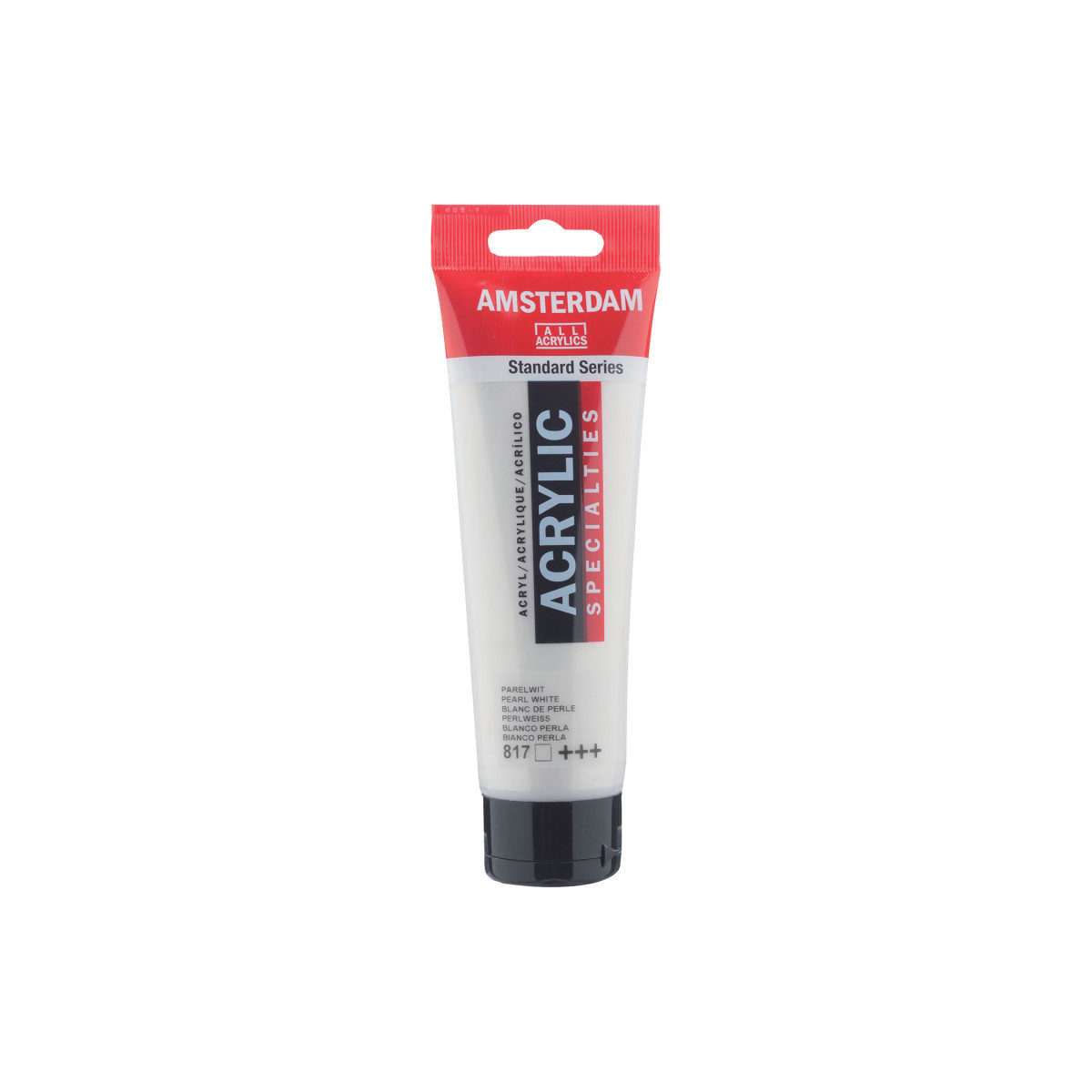 Amsterdam Standard Series acrylic paint in Pearl White (817) is a transparent color with an excellent lightfastness. Our Standard Series offers you the broadest range of remarkably vibrant acrylic colors. This versatile paint is easy to work with and offers a smooth application. Use the paint straight from the tube or thinned with a little bit of water or one of our acrylic mediums. Medium viscosity paint for visible brush strokes, texture and smooth coverage with a satin finish. Made with high-quality, lightfast pigments. Formulated with 100% acrylic resin binder, resulting in an exceptionally durable and flexible paint film with a uniform degree of gloss. Odorless, water-based formula that becomes waterproof and permanent when dry.