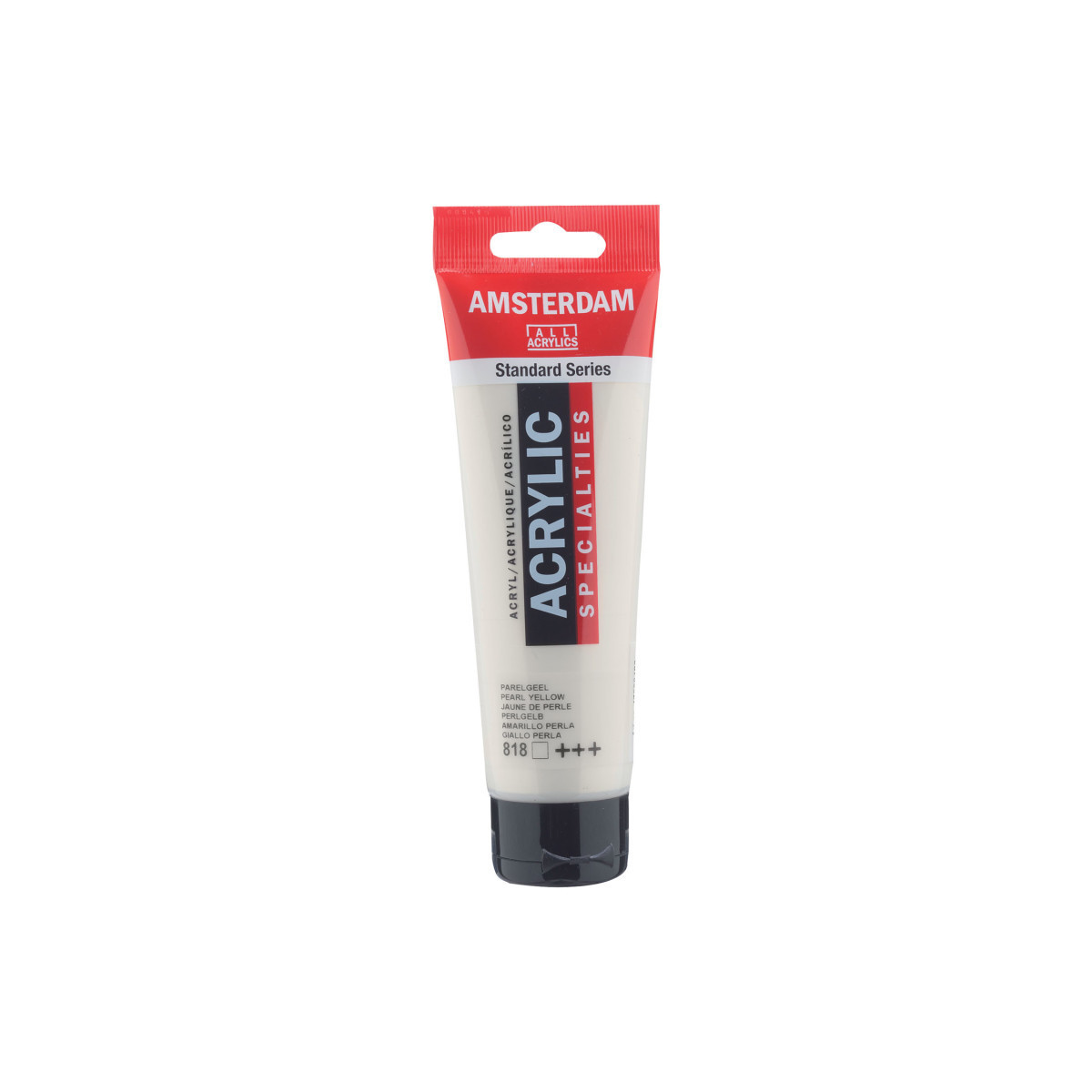 Amsterdam Standard Series acrylic paint in Pearl Yellow (818) is a transparent color with an excellent lightfastness. Our Standard Series offers you the broadest range of remarkably vibrant acrylic colors. This versatile paint is easy to work with and offers a smooth application. Use the paint straight from the tube or thinned with a little bit of water or one of our acrylic mediums. Medium viscosity paint for visible brush strokes, texture and smooth coverage with a satin finish. Made with high-quality, lightfast pigments. Formulated with 100% acrylic resin binder, resulting in an exceptionally durable and flexible paint film with a uniform degree of gloss. Odorless, water-based formula that becomes waterproof and permanent when dry.