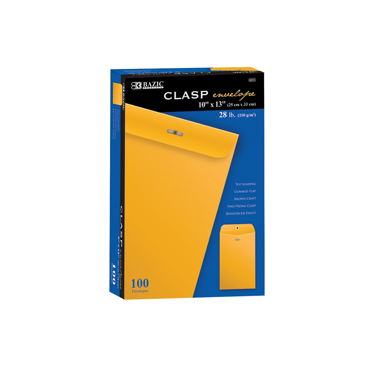 These 10" x 13" brown Kraft clasp envelopes are ideal for securing, storing, and mailing large documents and bulky files. Constructed from heavyweight 28lb Kraft paper, they offer durability and strength for everyday business or personal use. Each envelope is equipped with a reinforced metal clasp and a strong gummed flap, providing a reliable dual-seal closure. The clasp is designed for repeated use, making these envelopes a practical choice for offices, legal settings, and home organization. Perfect for tax returns, reports, catalogs, booklets, and more, these envelopes are built to handle a variety of mailing and storage needs.