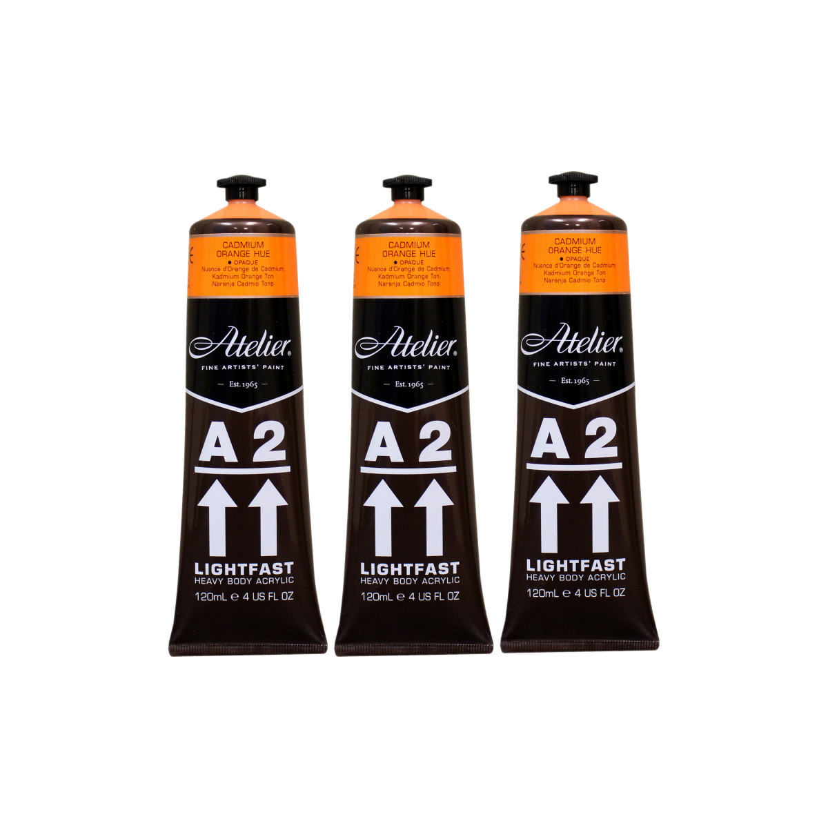 Atelier A2 Heavy Body Lightfast Artist Acrylic, 4 oz., Cadmium Orange Hue, Pack of 3