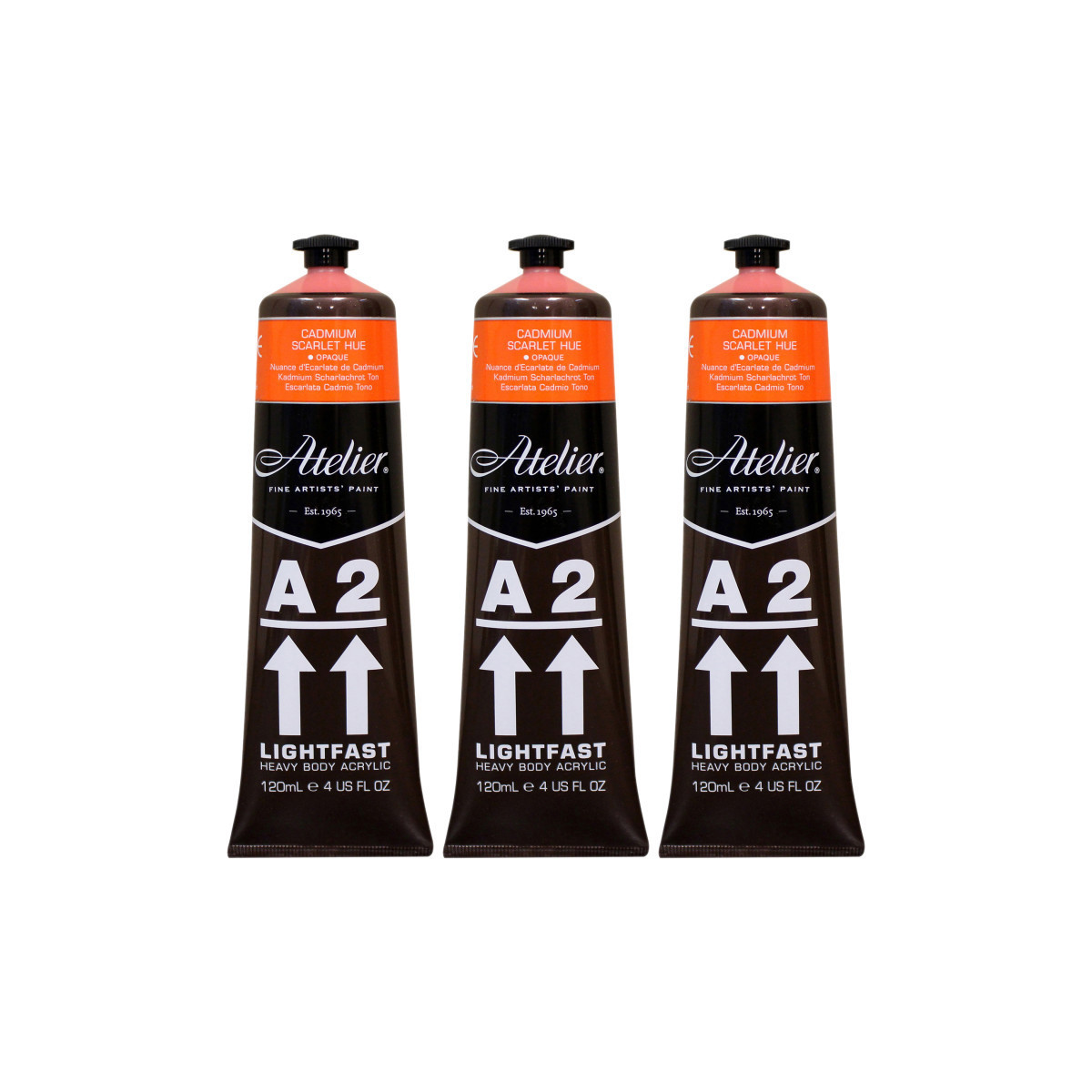 Atelier A2 Heavy Body Lightfast Artist Acrylic, 4 oz., Cadmium Scarlet Hue, Pack of 3