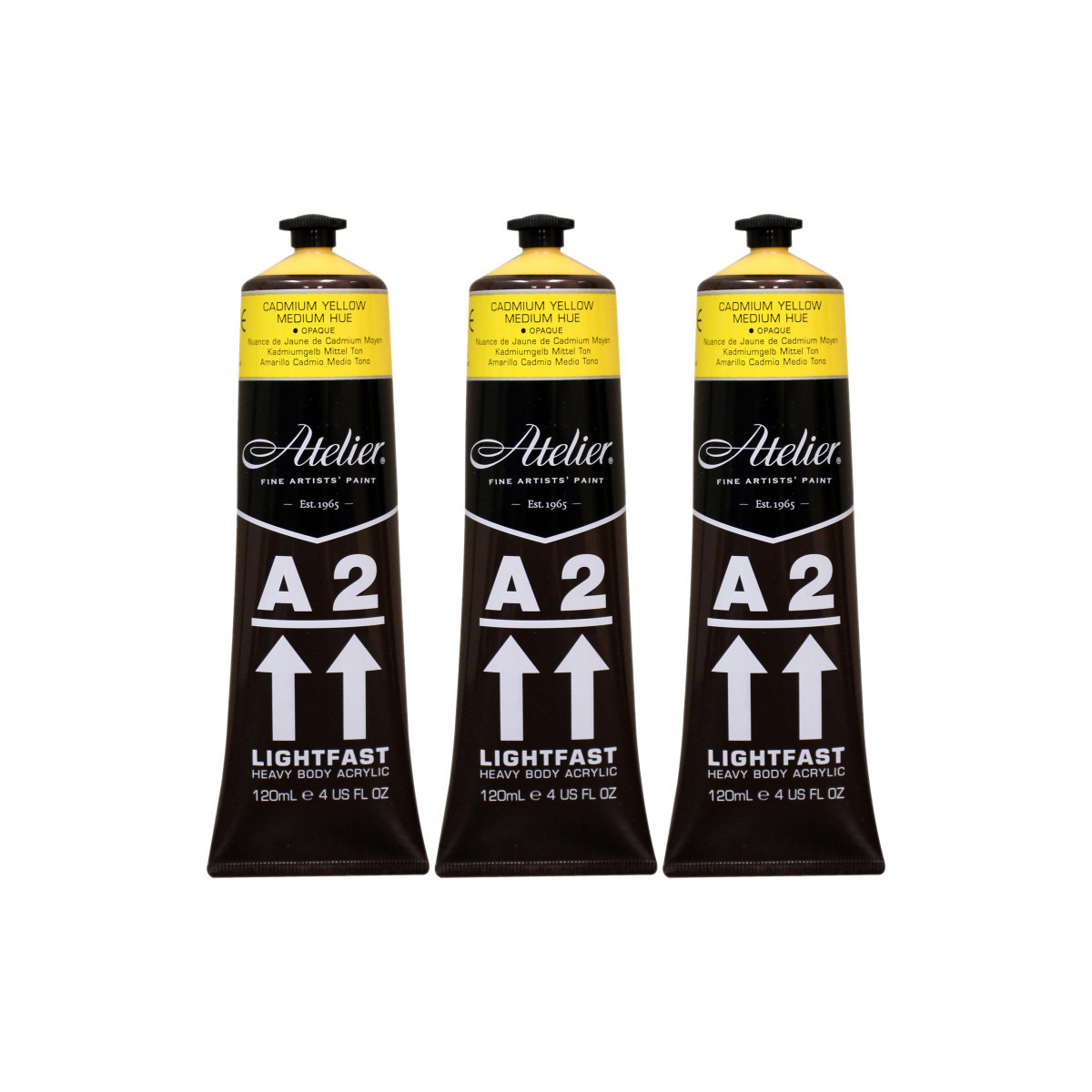 Atelier A2 Lightfast Heavy Body Artists’ Acrylics are a truly outstanding, highly pigmented, lightfast acrylic color made with modern pigments. The result is an acrylic color that has a great thick body with excellent brush-mark retention for acrylic color techniques and a brilliance and clarity as rich as professional acrylic colors. Colors dry to a semi-gloss finish for excellent color saturation and luminosity. Atelier A2 Acrylics offer professionals and beginners alike a great quality artist acrylic. Includes 1 tube of paint, 4 oz. / 120 ml. Sold as a pack of 3 tubes.