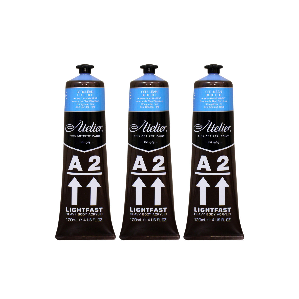 Atelier A2 Heavy Body Lightfast Artist Acrylic, 4 oz., Cerulean Blue Hue, Pack of 3