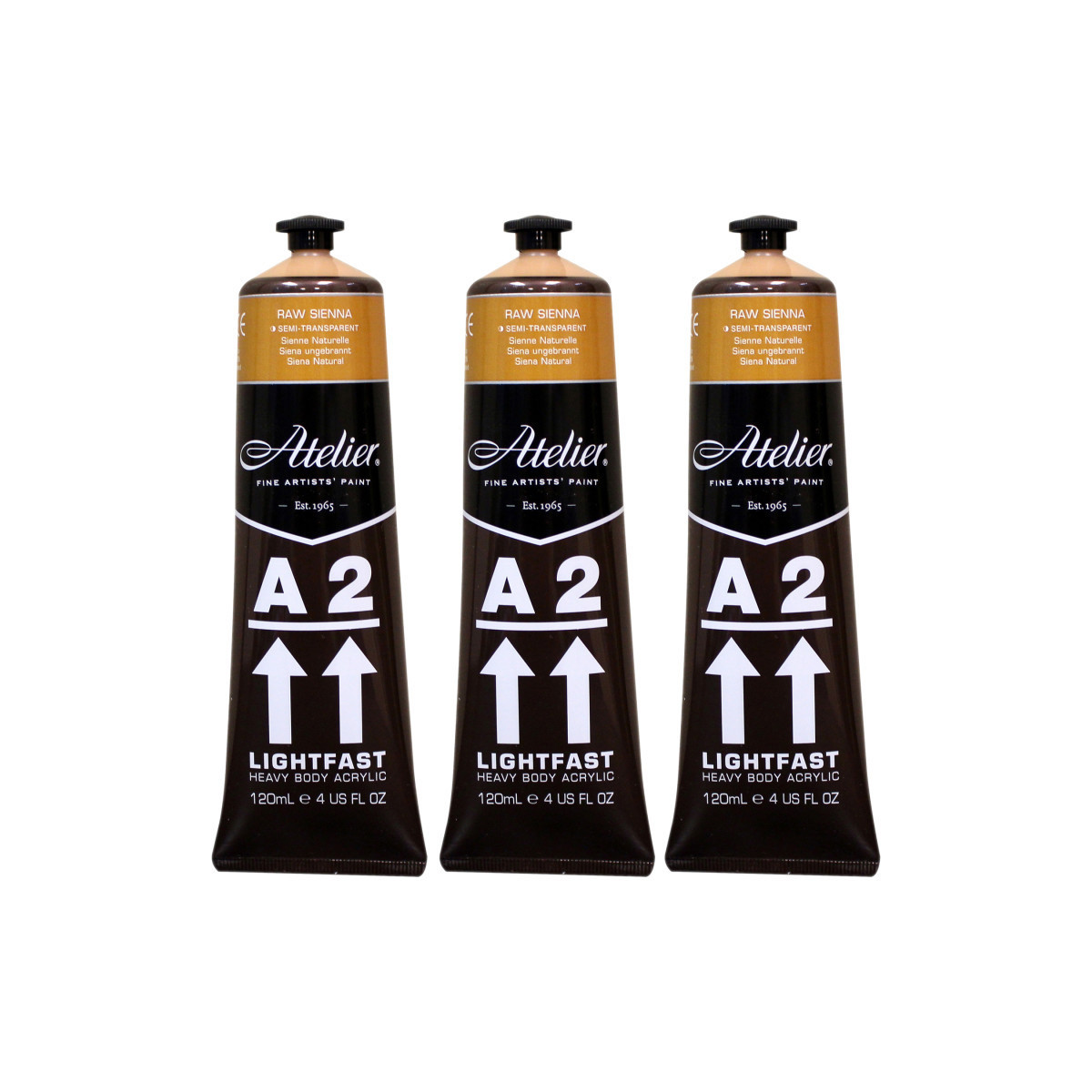 Atelier A2 Heavy Body Lightfast Artist Acrylic, 4 oz., Raw Sienna, Pack of 3