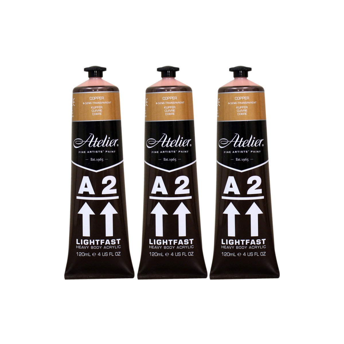 Atelier A2 Heavy Body Lightfast Artist Acrylic, 4 oz., Copper, Pack of 3
