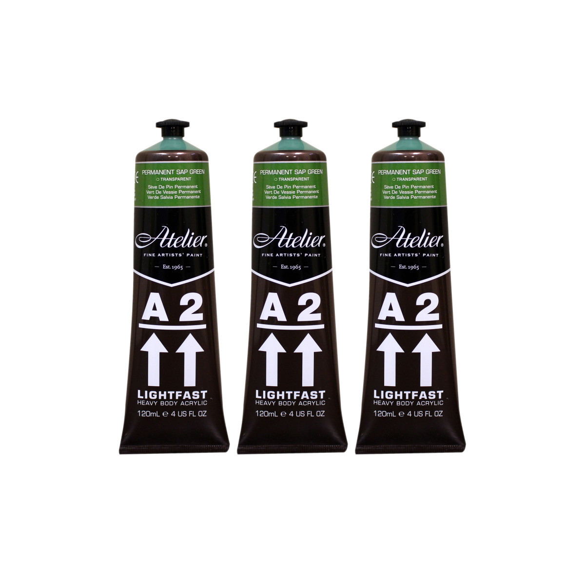 Atelier A2 Heavy Body Lightfast Artist Acrylic, 4 oz., Permanent Sap Green, Pack of 3