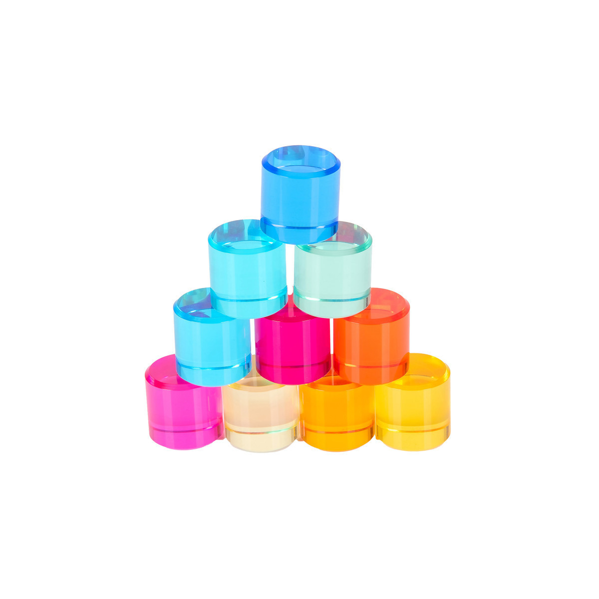This set features 10 acrylic circles in assorted colors. They're solid and polished with smooth edges. Use them for color mixing, stacking and balancing. Place them on a light panel or hold them in front of a window to create colorful shadows and watch colors dance. These colorful manipulatives are appealing for children to handle, which makes them an excellent resource for open-ended, sensory play. The high-quality, solid acrylic is easy to wash. And they're designed to last for years of classroom or home use. For ages 3+. Size: 1" cube.