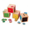 This set includes 4 sorting boxes and 40 wooden disks. Each sorting box features a different colored door (green, red, blue or yellow). And the disks come in a variety of shades to match. Match the disks to each colored box to practice sorting and counting. Each component comes with a chalkboard side to write and draw letters, numbers or creative designs. Made from beechwood and pine, this set is designed to last for years of classroom or home use. For ages 2+. Size of sorting box: 4.7" cube. Size of each disk: 1.8" dia.