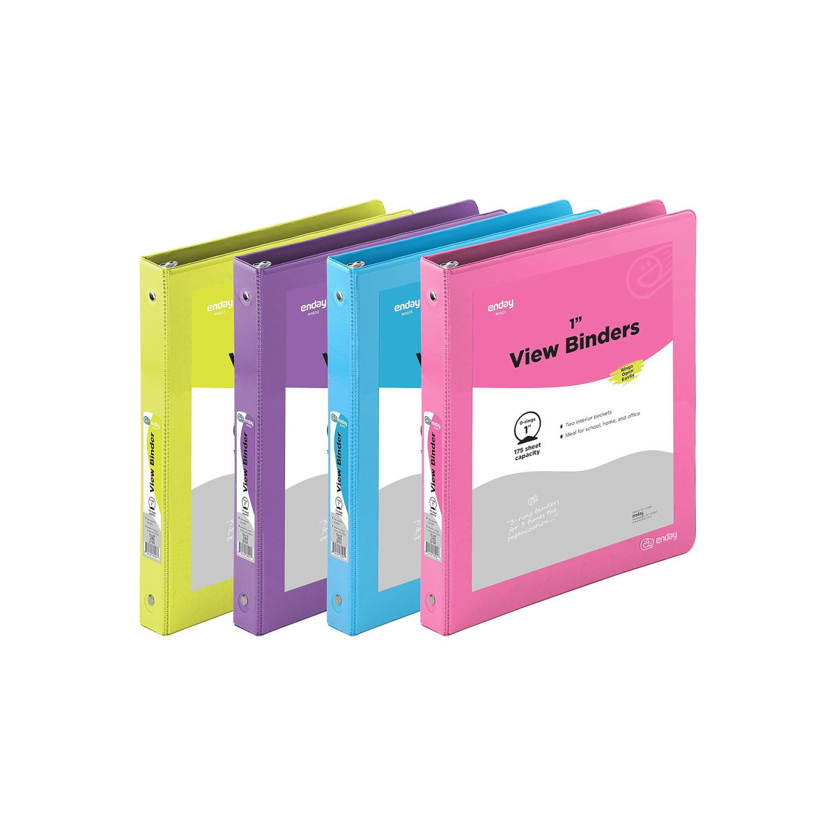 The customizable 1-inch 3-ring binder is the perfect organizational tool for home, school, or office use. Sold as a 4-pack in assorted colors, these binders are ideal for color-coding by subject or project, making them both kid-friendly and professional. Lightweight and compact, they are designed for efficient storage while offering a tear-resistant cover to ensure durability and a like-new appearance over time. The transparent, non-stick overlay on the front, spine, and back cover allows for easy customization, making it simple to label and identify even when stored on a crowded shelf.