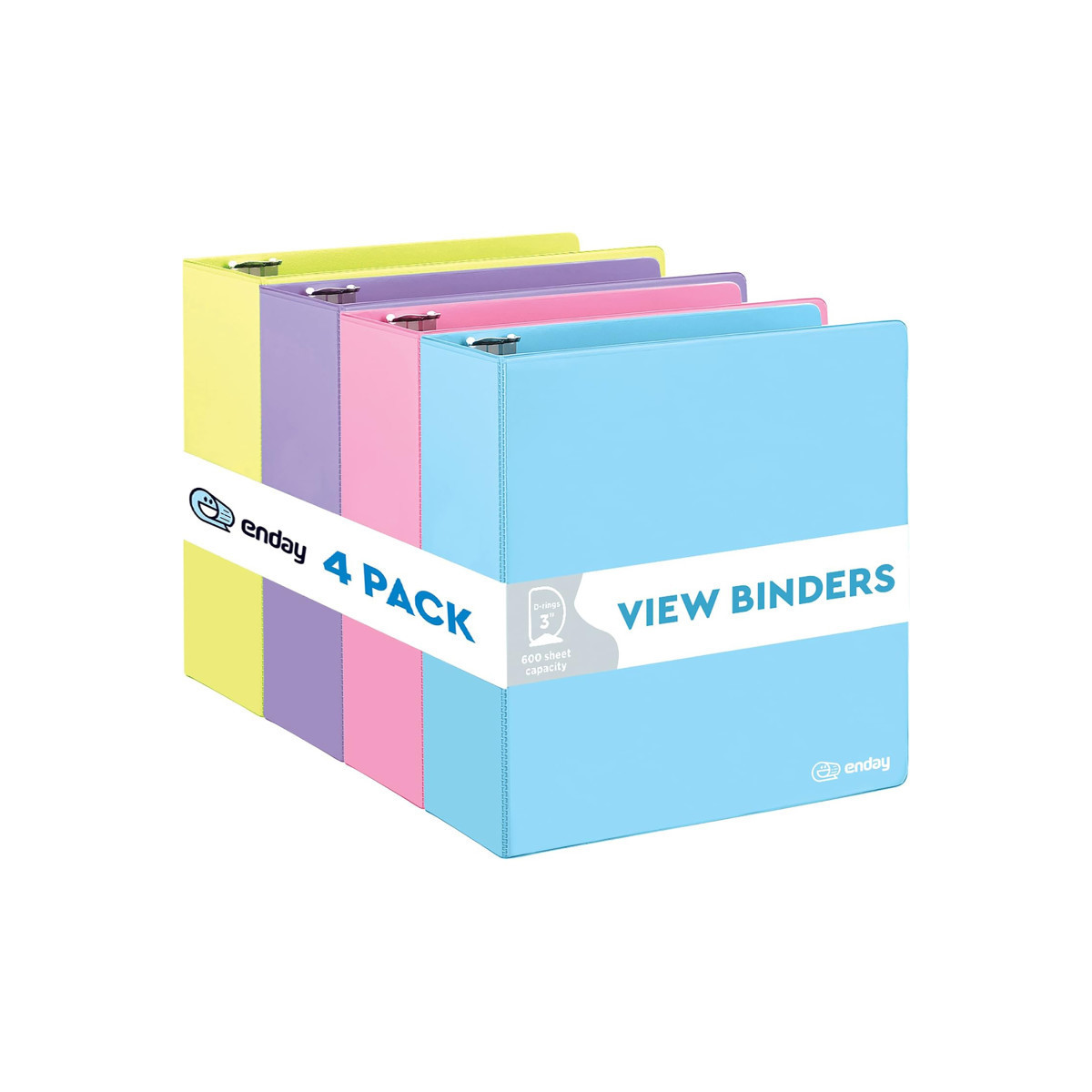 The customizable 3-Inch 3-Ring Binder is designed for efficient and versatile organization at school, home, or the office. Sold as a 4-pack in assorted colors, these binders are perfect for color-coding by subject or project, making them both kid-friendly and professional. The durable, tear-resistant cover ensures long-lasting use, while the lightweight design makes it easy to carry and store. With a transparent, non-stick overlay on the front, spine, and back, this binder allows for full customization, ideal for personal or business use.