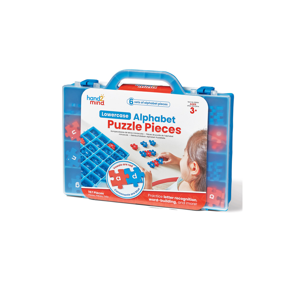 Practice letter recognition, word-building, and more! These durable puzzle pieces link together for endless word-building fun. Each set includes 6 sets of the alphabet, with blue consonants and red vowels to help students build foundational literacy skills. Everything can be stored neatly in a reusable plastic container for easy organization. Includes: 156 Letter Puzzle Pieces (6 Sets of the Alphabet), 1 Plastic Storage Organizer with Labels, and Activity Guide.