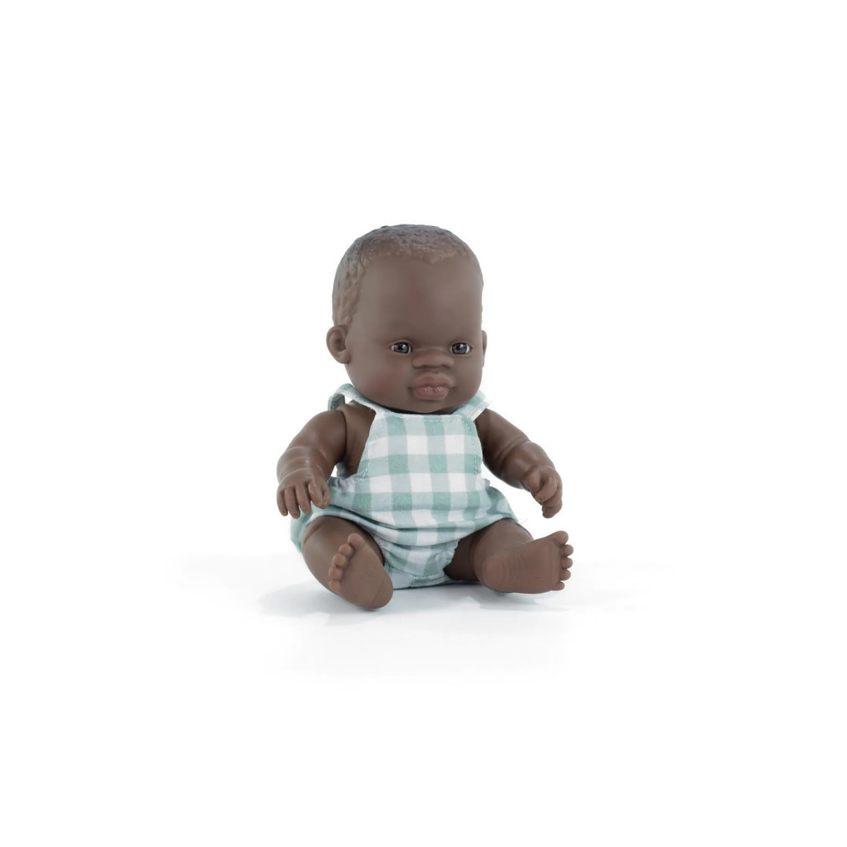 Discover the magic of friendship with the 8-1/4" African Boy Baby Doll from Miniland's exclusive "My Friends & Me" collection. This charming doll is designed to promote essential values such as friendship, diversity and learning to share from a very young age.We love it because this doll is part of a collection that celebrates the value of sharing and making friends. Ideal for children 10 months and older, it helps develop social and emotional skills while they play. Each doll has its own clothes designed especially for him and comes with a kraft gift bag, you will love it! We make them in Spain, in high quality soft vinyl and with a light vanilla scent, making it a nice and safe playmate. Miniland's 8-1/4" African Boy Baby Doll is more than just a toy; it is an educational tool that combines fun, creativity and fundamental values. Ideal for gift giving and to encourage an enriching play experience.