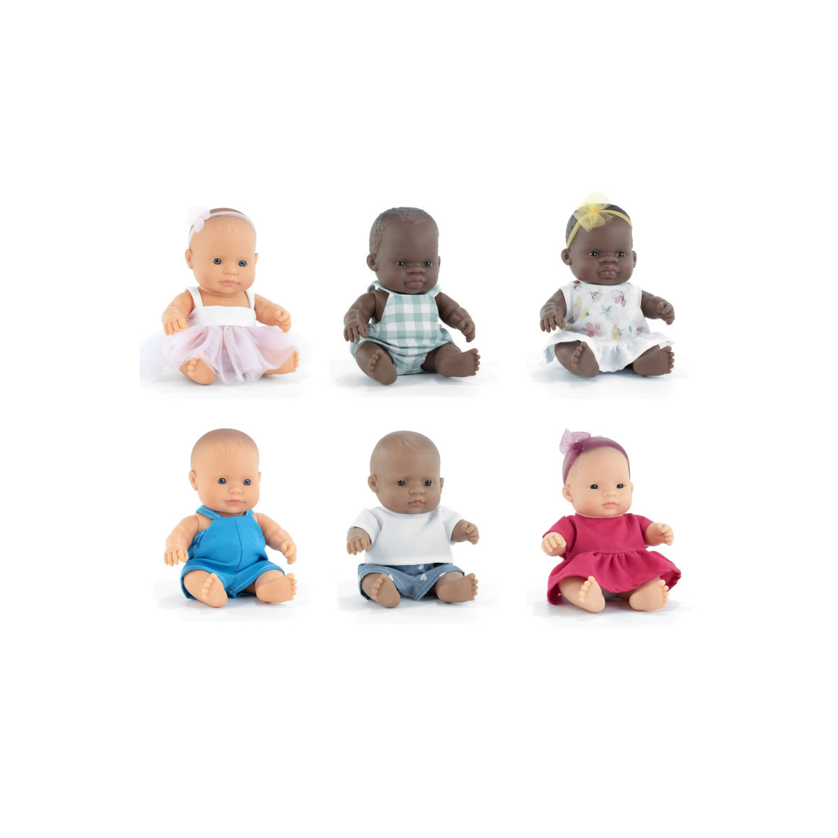 Fill your shelves with joy with our collection of good friends. This set includes six charming dolls, measuring 8-1/4", designed to promote essential values such as friendship, diversity and learning to share from a very young age. A collection that celebrates the value of sharing and making friends. Ideal for children from 10 months and up, as it helps develop social and emotional skills while they play. Each doll has its own clothes designed especially for him, you will love it! We make them handmade in Spain, in high quality soft vinyl and with a light vanilla scent, making it a nice and safe playmate.