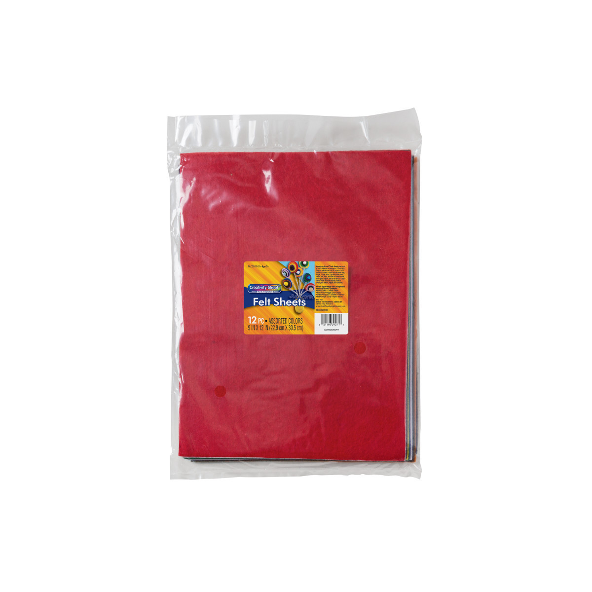These felt sheets are great for use as is, or can be cut to fit specific craft needs. Each sheet is 9" x 12" and come in an assortment of colors, including: White, Gray, Purple, Orange, Black, Light Blue, Pink, Green, Yellow, Red, Black, and Blue. Felt sheets accept many types of glues, and can be used for a wide variety of arts and crafts projects, such as sewing, doll clothes, puppets, and costumes. Measures 9" x 12". Each pack includes 12 sheets.