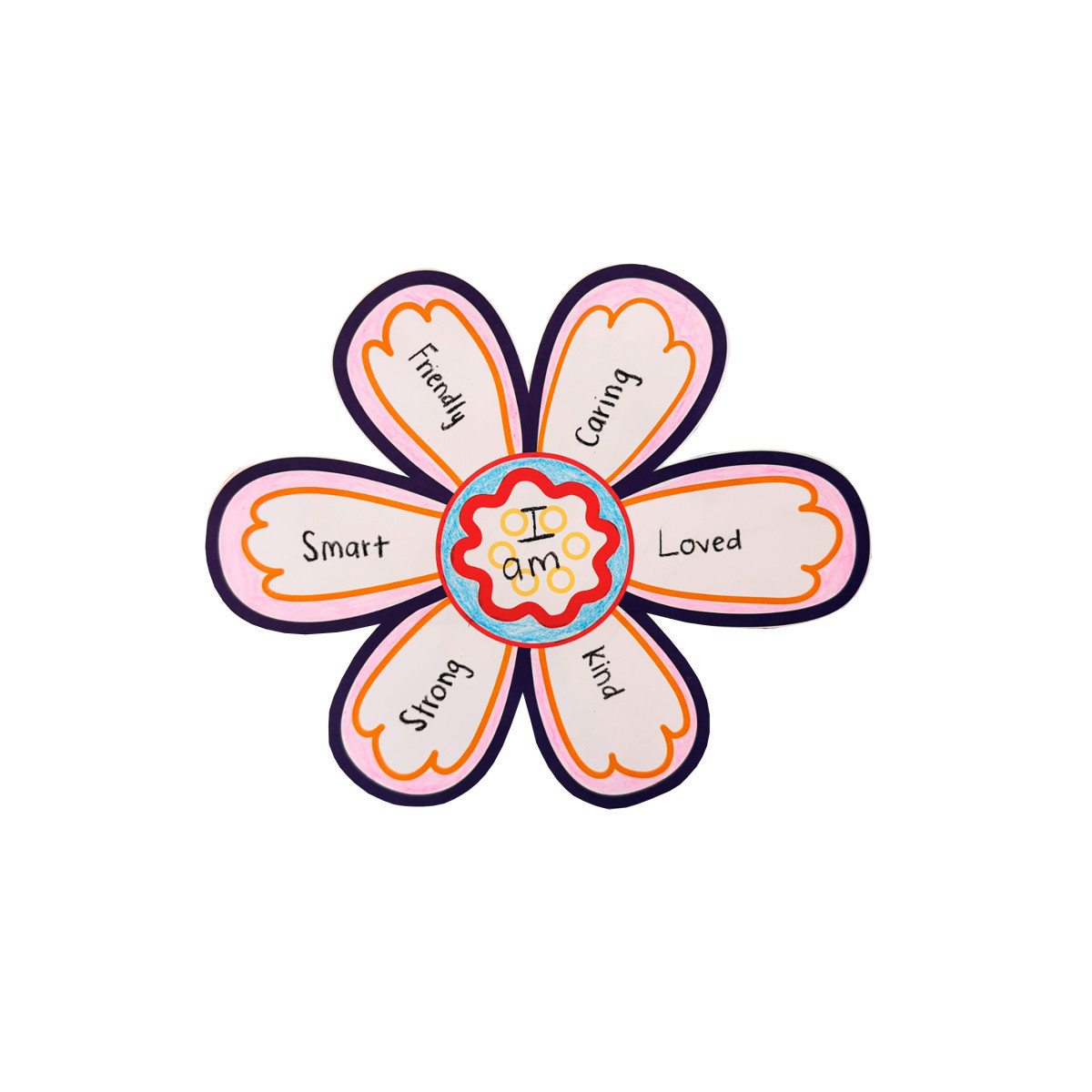 - Label each petal with positive affirmations from our online list, available in five languages.