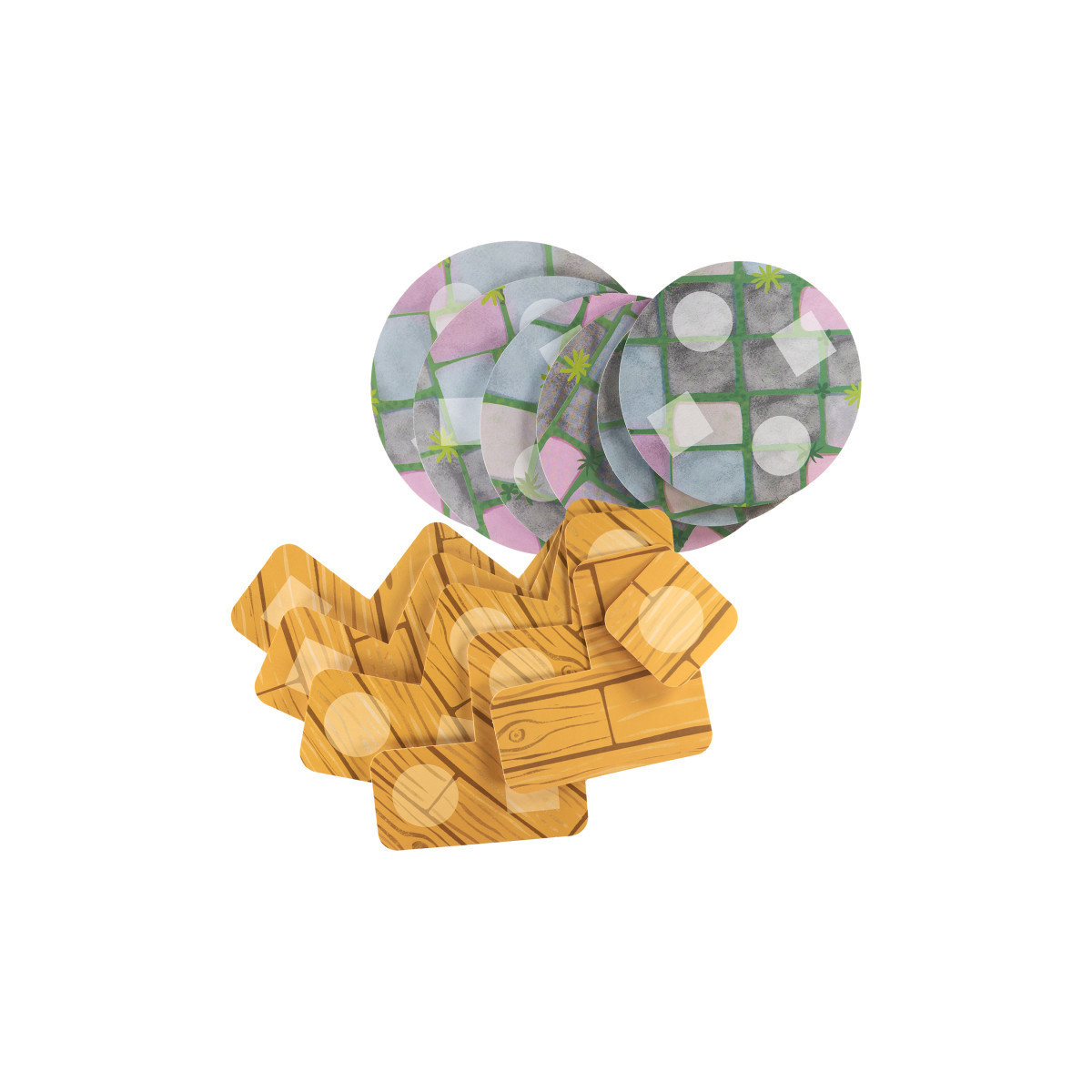 Layer cards feature printed shapes to guide children through the building process.