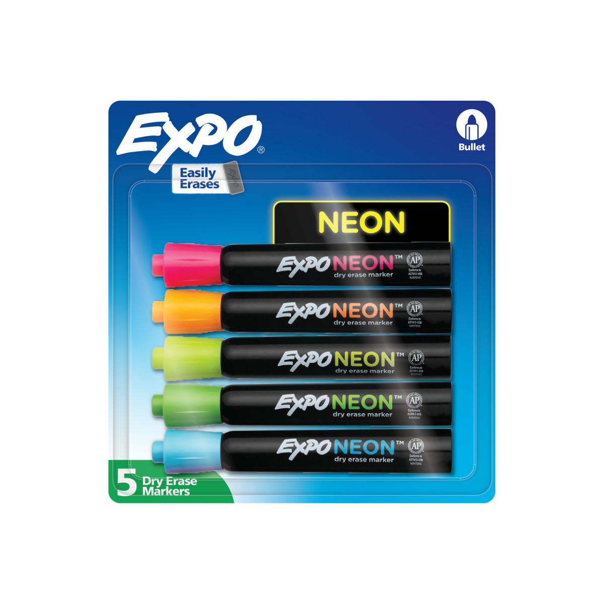 Add fun and vibrant color to planning, presentations, lessons, calendars, home organization, and more with EXPO Neon Dry Erase markers! This collection of EXPO markers helps everything come across clearly—from big ideas to fine details. The bright neon colors shine on light and dark surfaces, including whiteboards, glass, acrylic, and other clear, nonporous surfaces. With an EXPO eraser or dry cloth, the ink erases cleanly and easily, so there’s little pause in any brainstorm session. And the low odor markers are great for classrooms, offices, and homes!